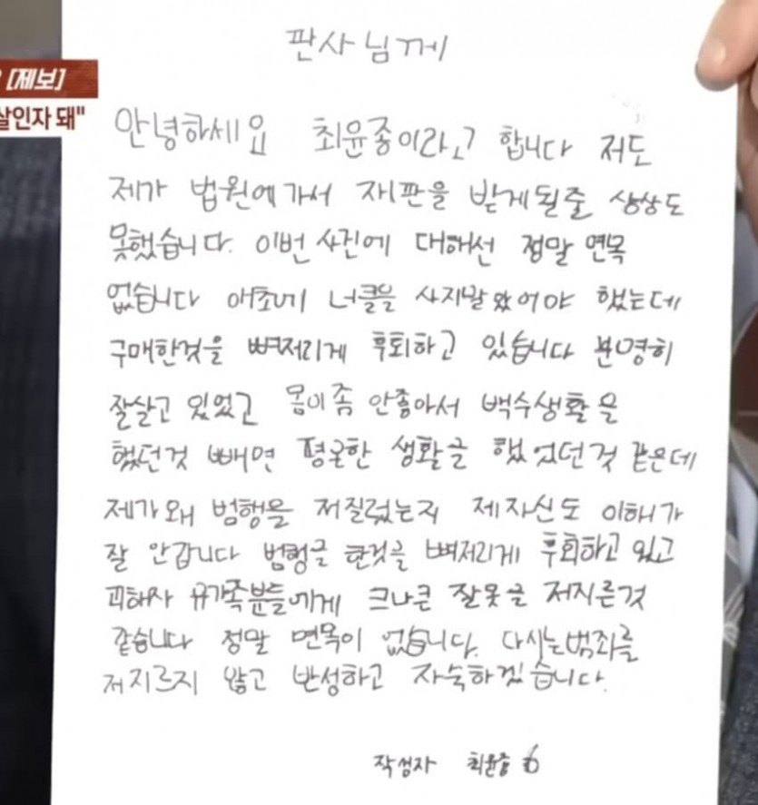 혐)살인범 최윤종 반성문 레전드