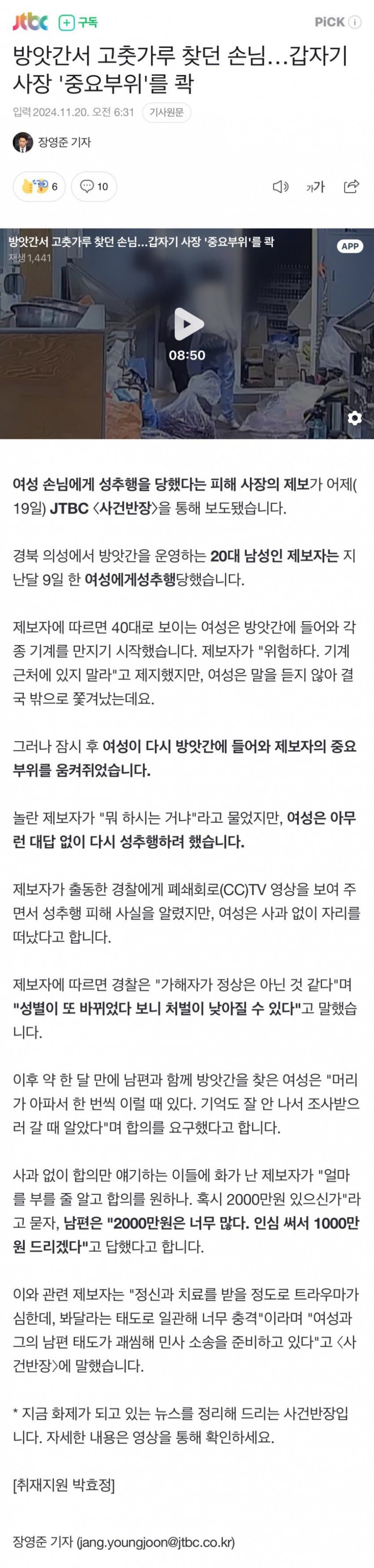 방앗간서 고춧가루 찾던 손님…갑자기 사장 '중요부위'를 콱