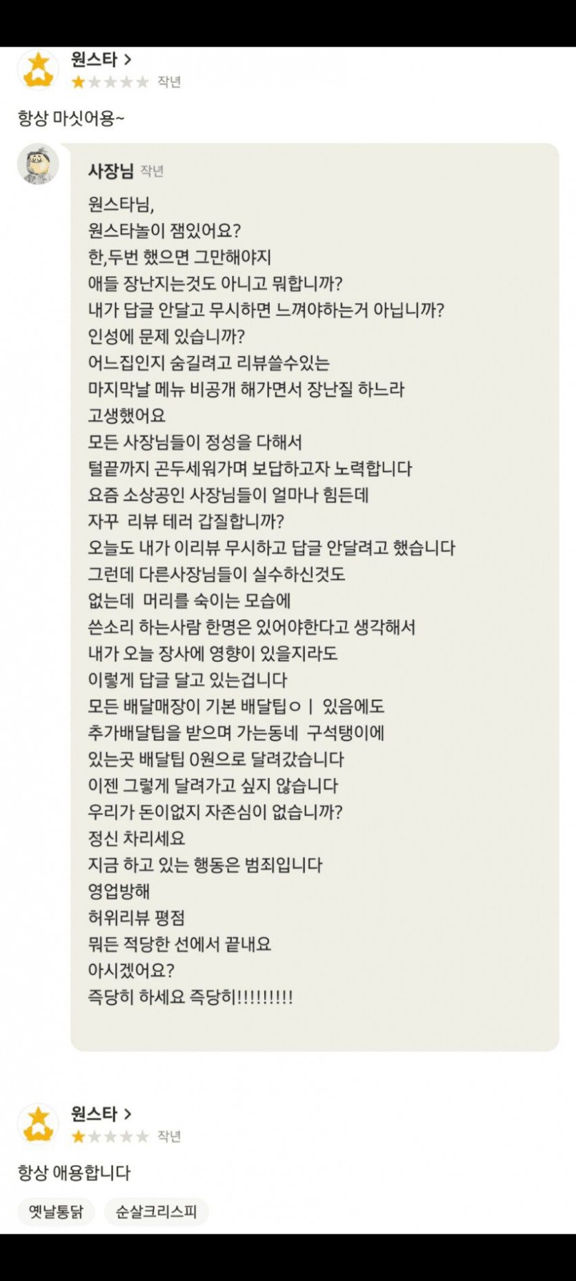 배민에 나타난 원스타 빌런