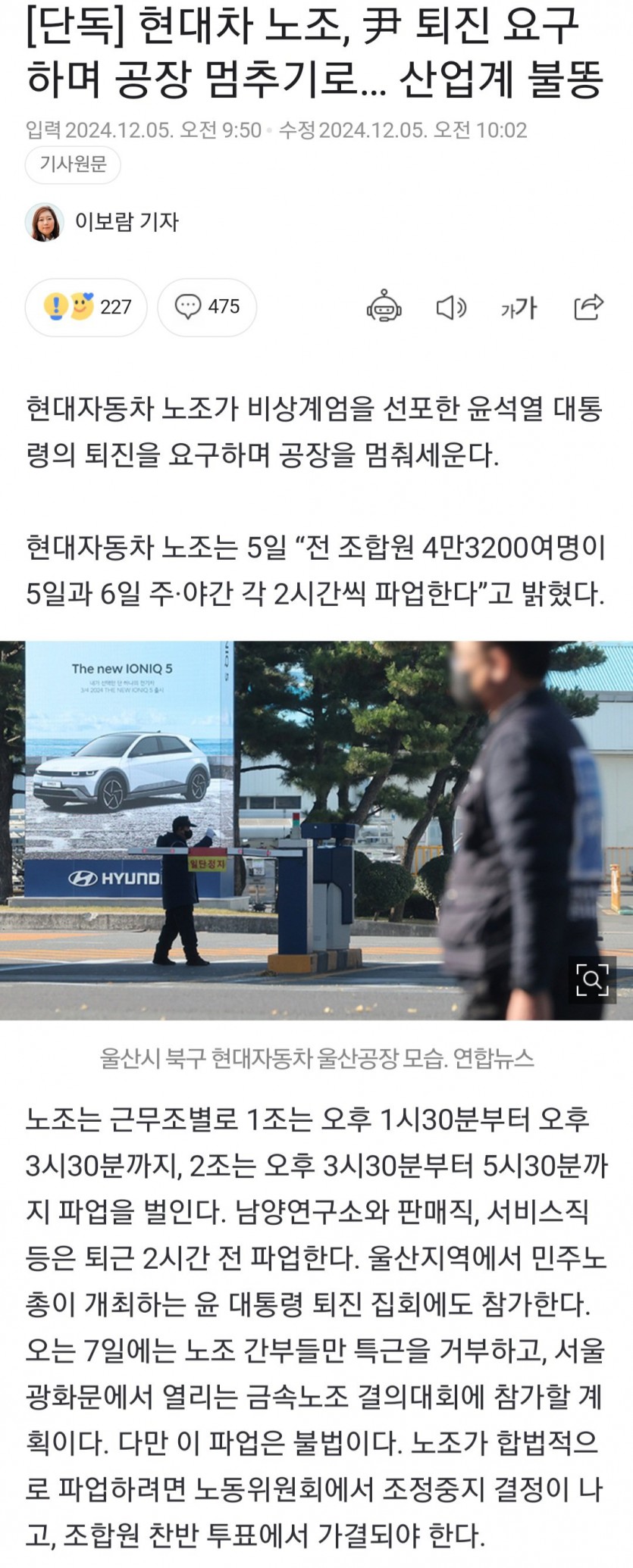 현대차 노조, 尹 퇴진 요구하며 공장 멈추기로… 산업계 불똥