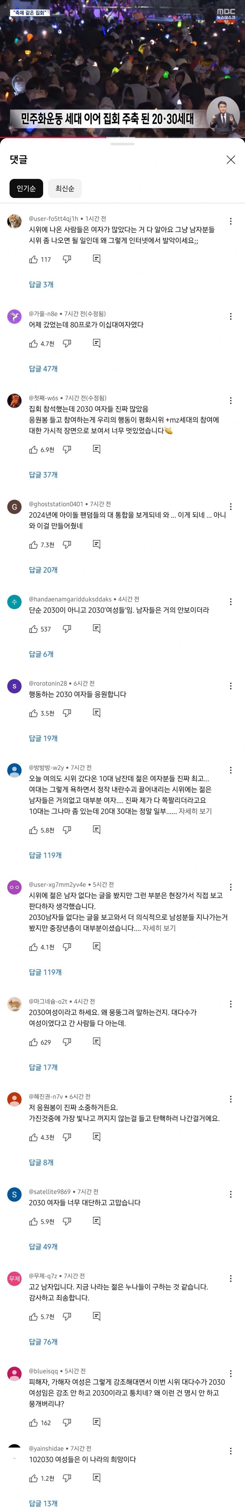 유튜브 MBC 댓글 근황