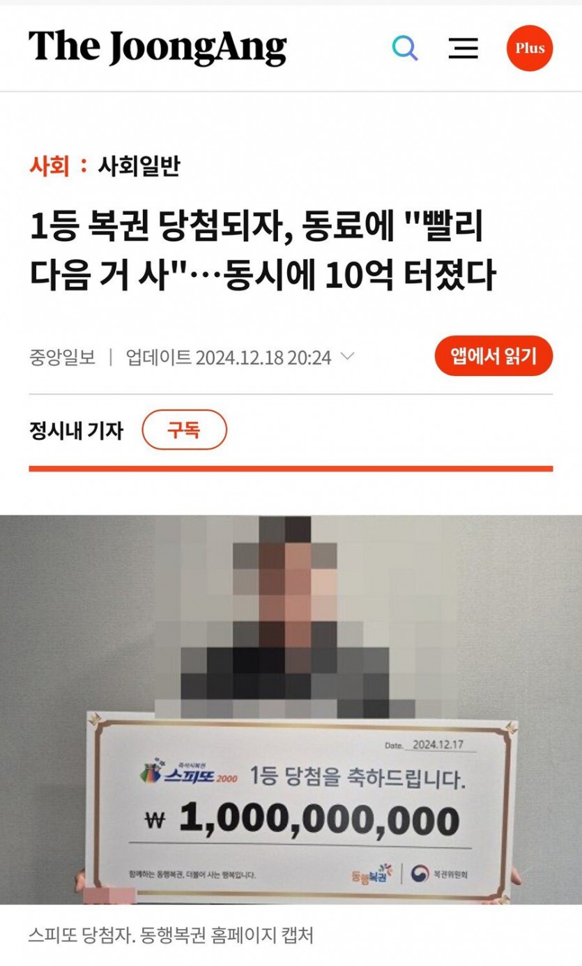 스피또 10억 당첨자 확인하고 동료한테 빨리가서 한정사라.동료 10억당첨