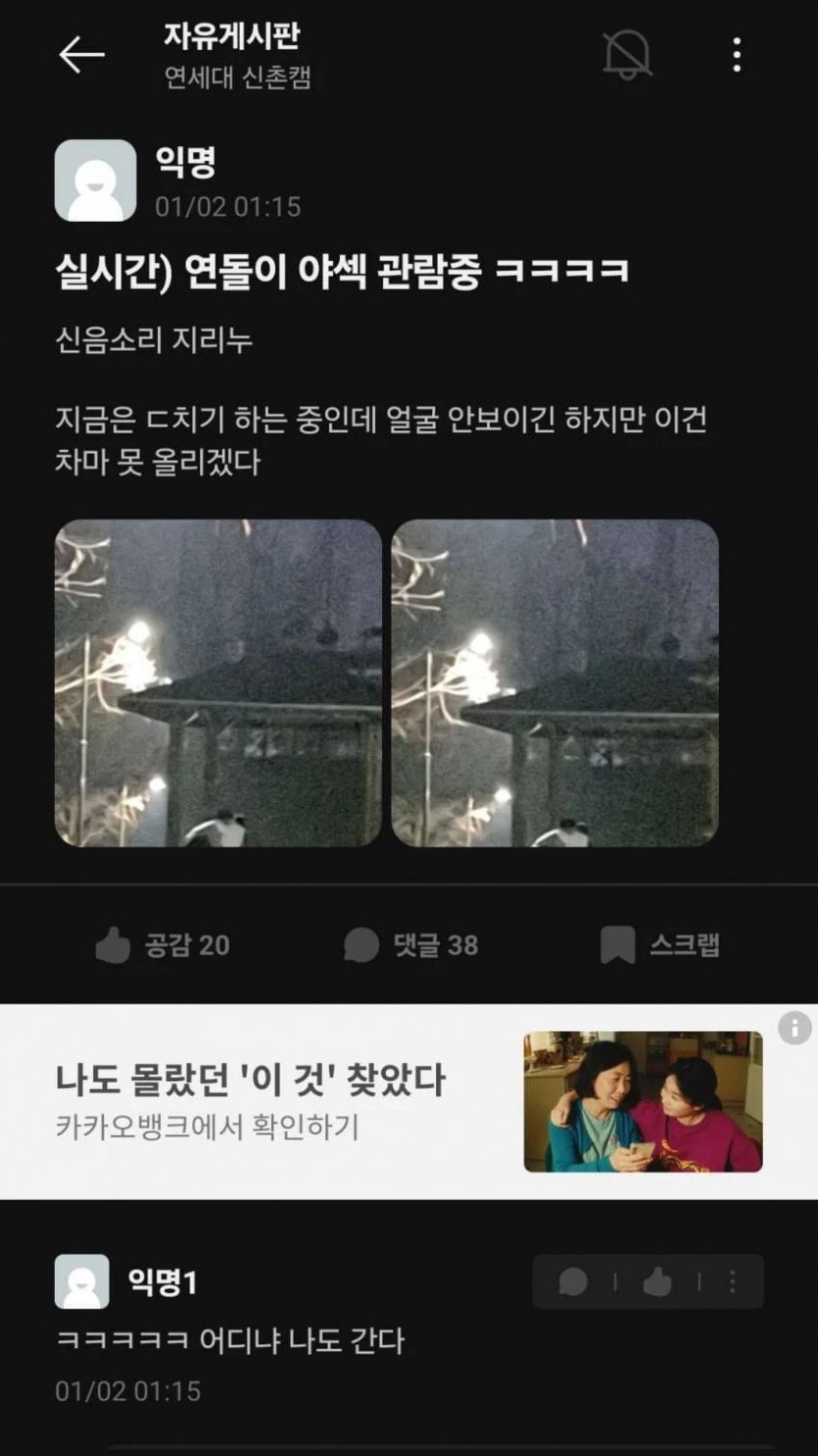 오늘자 야외 ㅅㅅ 로 난리난 연세대 에타.