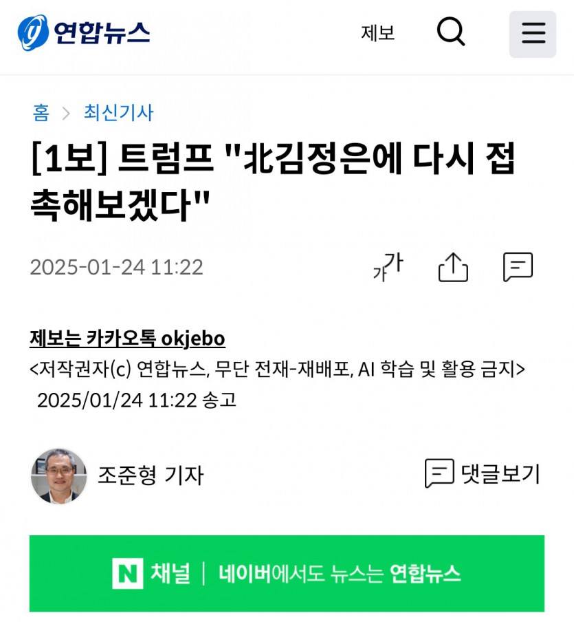 [1보] 트럼프 "北김정은에 다시 접촉해보겠다"
