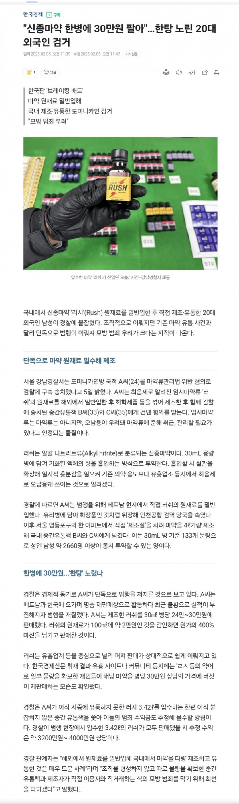 한탕 노린 20대 외국인 마약팔다 검거 한국은 마약 강국이 되고있다~