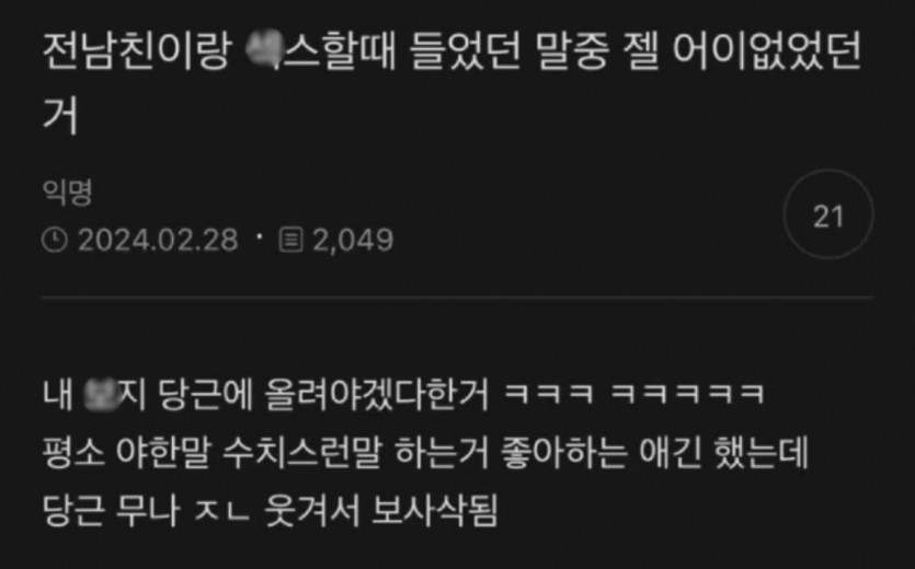 전남친이랑 섹스할때 들었던 말중 젤 어이없었던거