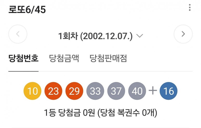 23년전 2002년 로또 1회차 1등 당첨금!!
