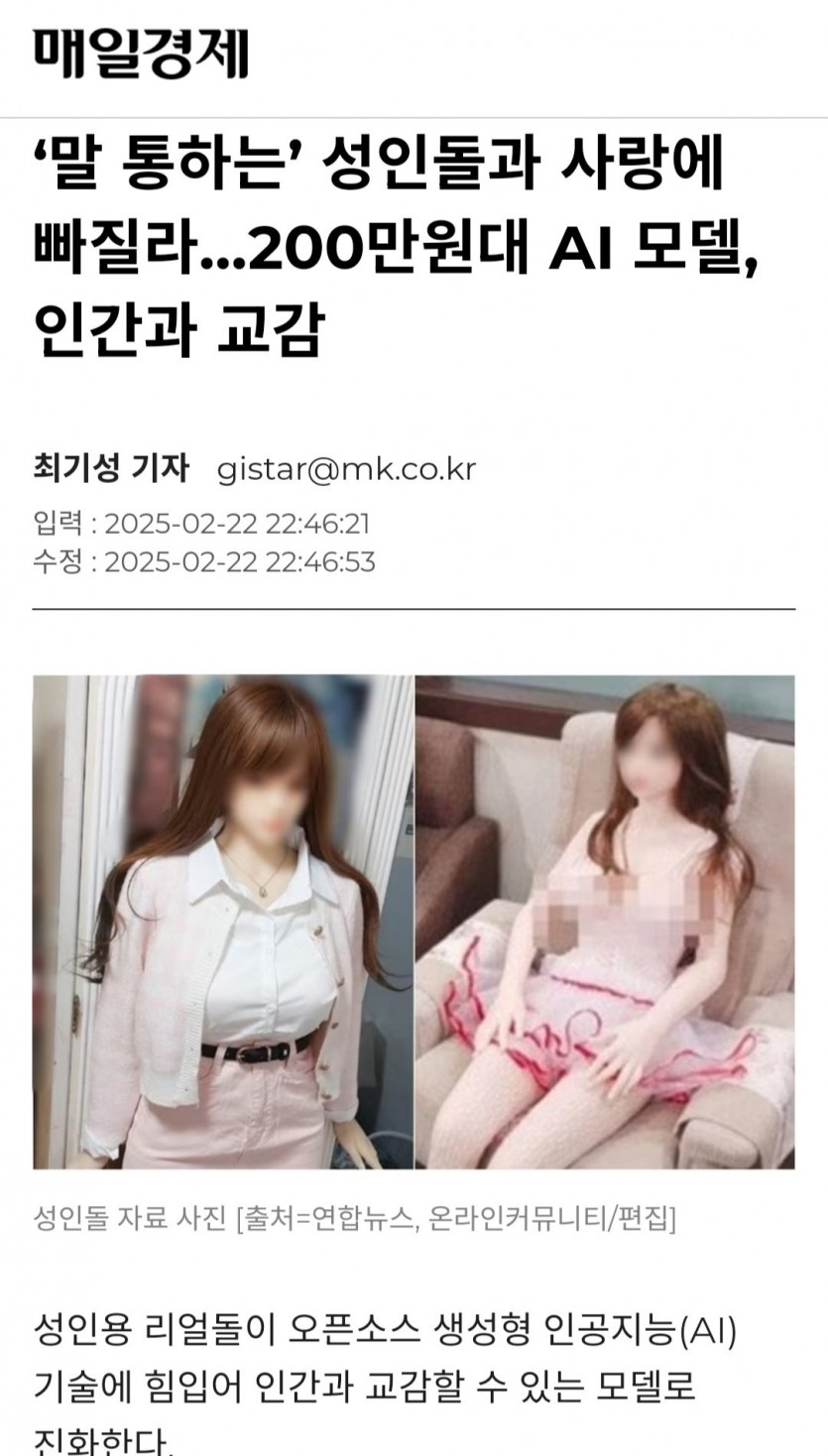오픈 AI 탑재된 전신 리얼돌 출시