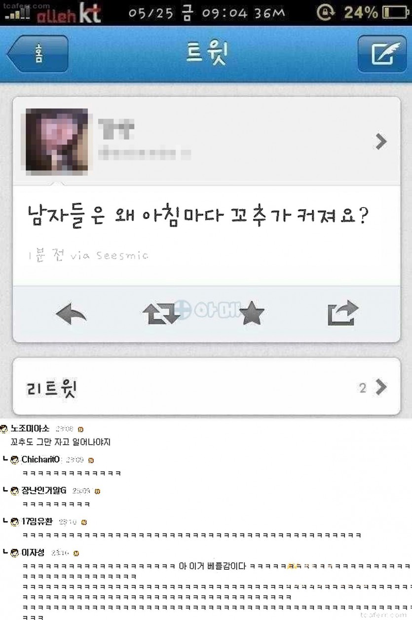 남자들은 왜 아침마다 꼬추가 커져요?