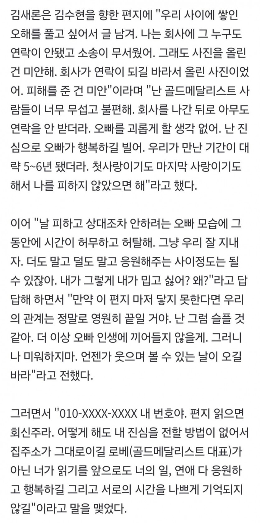 故김새론이 김수현에게 편지 …"나 미워하지마, 우리가 만난 6년 나쁘게 기억되지 않길"