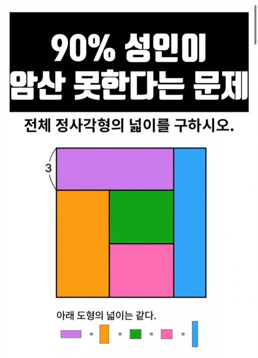 90% 성인이 암산 못 한다는 문제입니다 ㄷㄷ