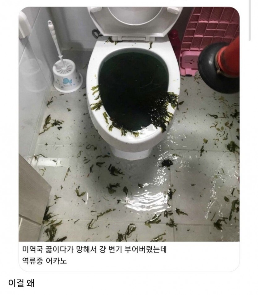 미역국을 끓이다가 실패해서 화장실에 버렷는데 대 참사 난 사람