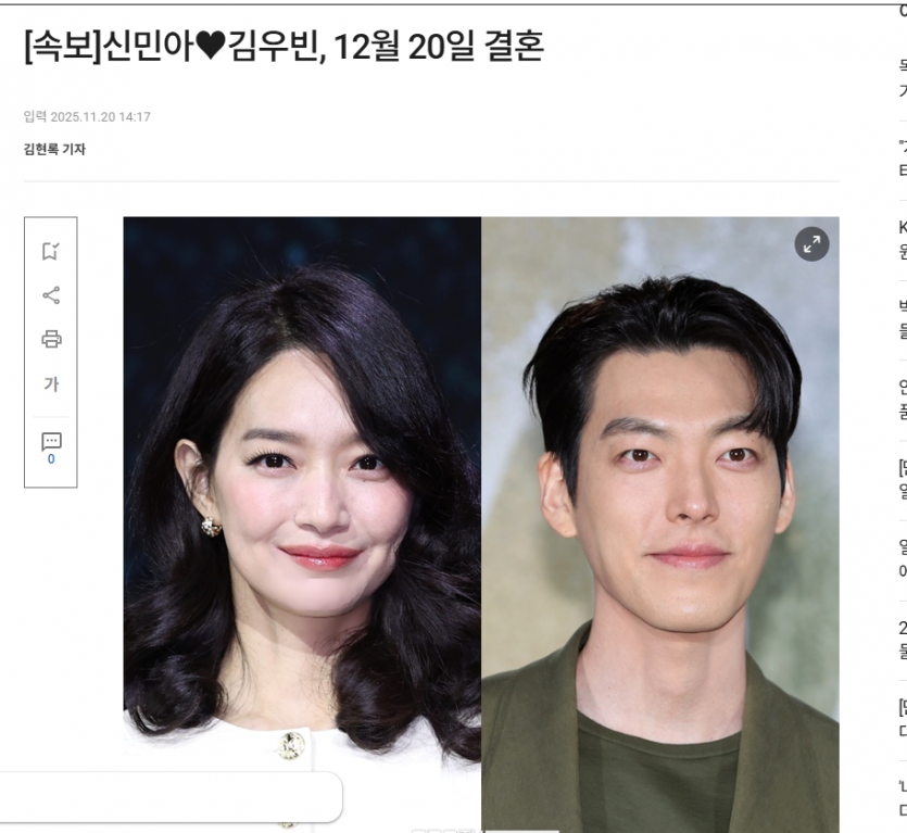 12월 20일 김우빈 신민아 결혼