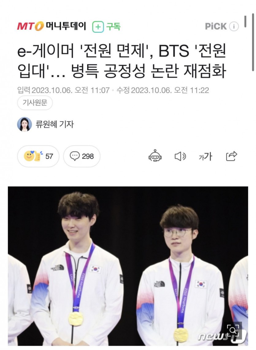 E스포츠가 금메달따자 나온 기사..jpg