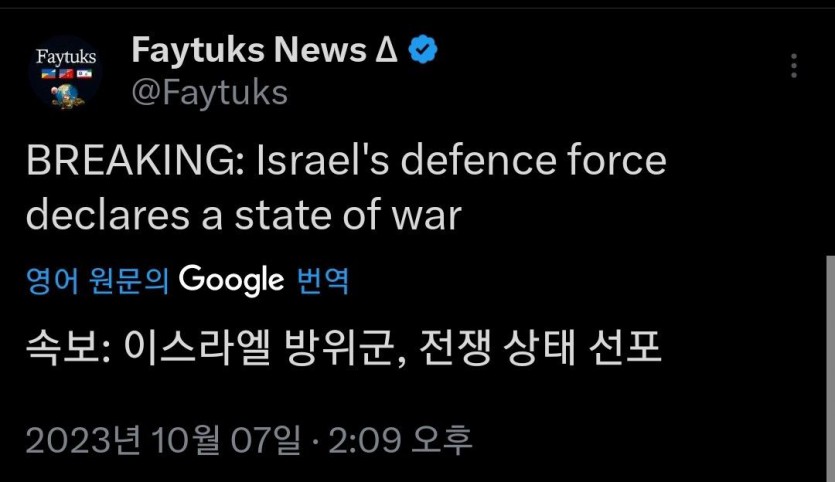 [속보] 팔레스타인 vs 이스라엘 전쟁 발발!