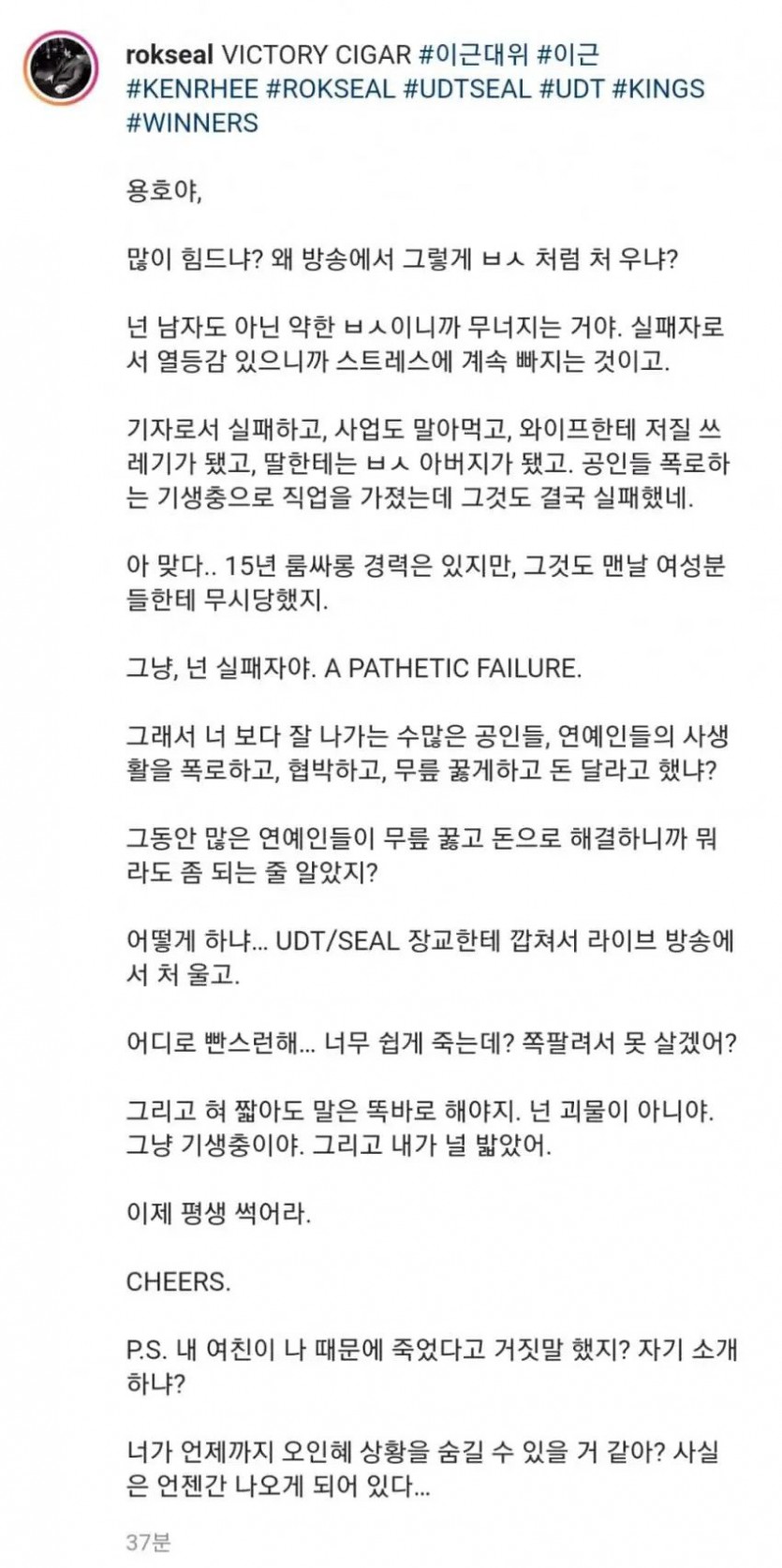 기자 김용호 극단적 선택.이와중에 이근 티배깅 ㅈㄴ웃긴 점ㅋㅋ