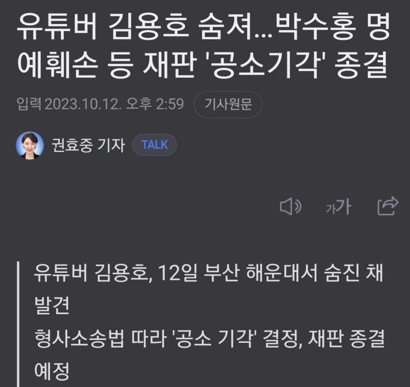 김용호 유투버 자살해서 모든 재판은 기각될듯하다