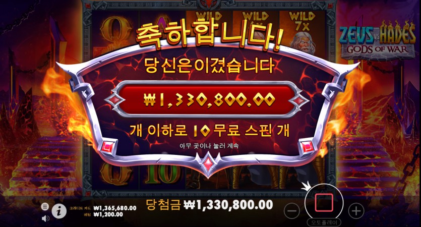 보너스 걸린 하데스 ㅋㅋ 천배 이상먹었네~~