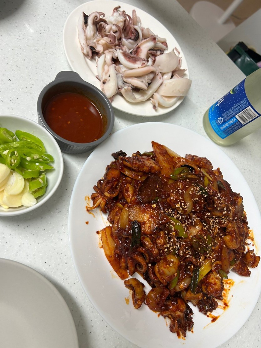 마무리는 쭈삼볶음에 갑오징어 숙회~~ㅎㅎ 요새 유행한다는 청하스파쿨링 ~~