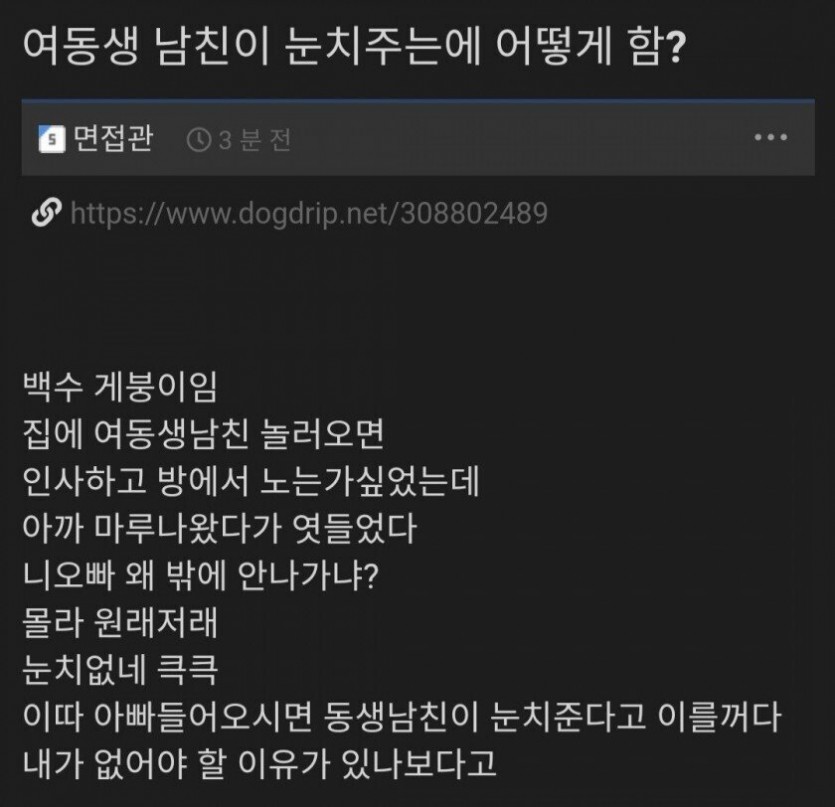 여동생. 남자친구가 ..눈치 주는데 어떻게 해야 할가요...?