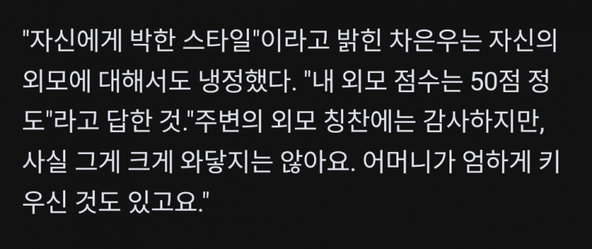 차은우가 자기 외모 평점을 냈다...내 외모는 50점