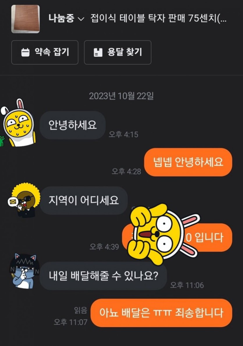당근 나눔했는데 배달요청 ㅋㅋㅋㅋ