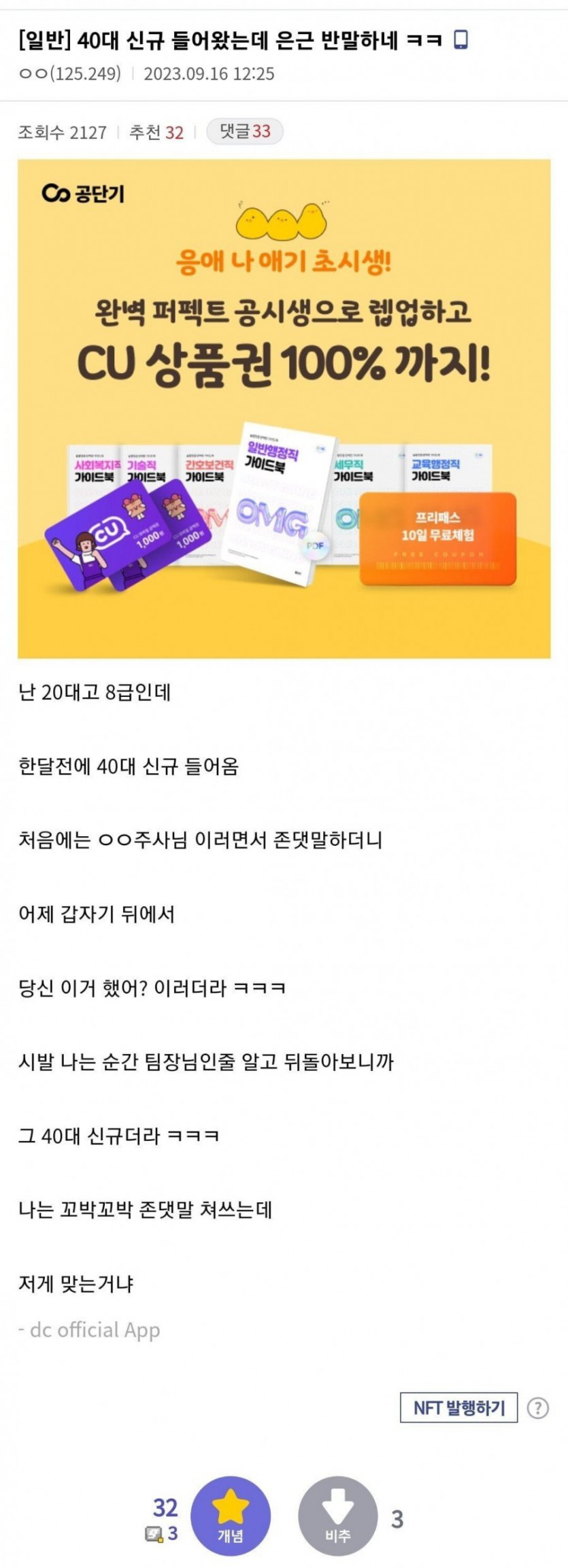 40대 9급 신규가 20대 8급한테 은근 반말..JPG