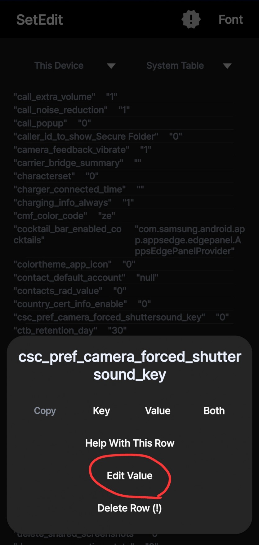 터치 후 Edit Value 눌러서 0으로 바꿔주기