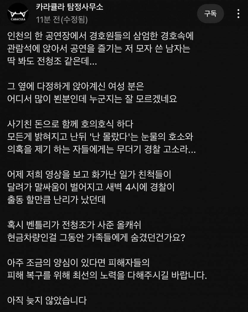 실시간 카라큘라 전청조 남현희 관련글 올라왔습니다