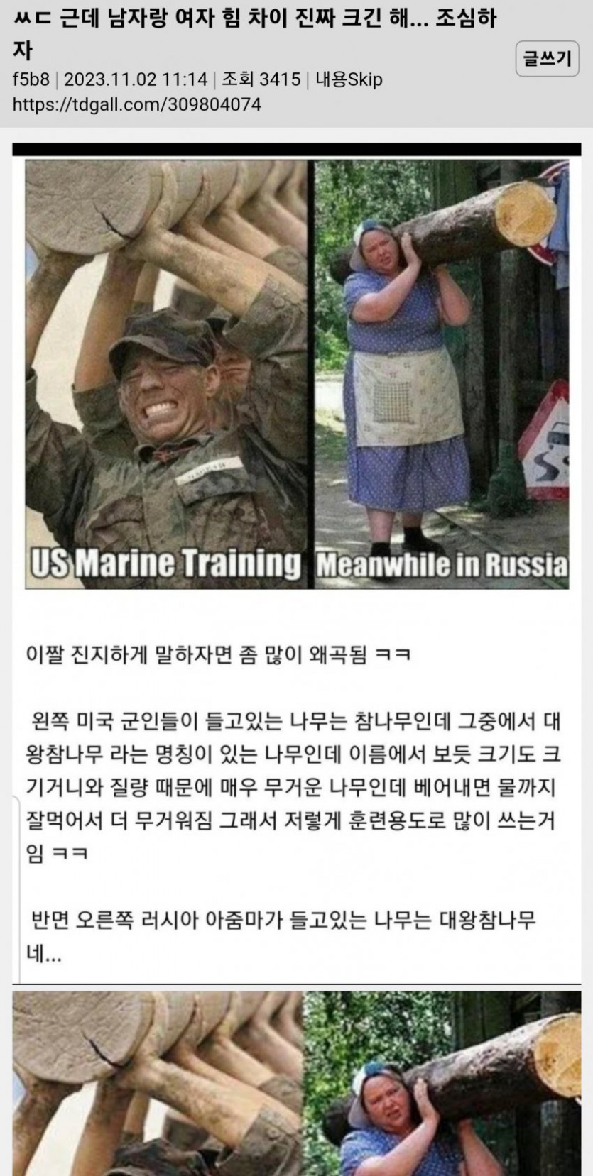 남자와 여자 힘 근력차이...어느 여초사이트 댓글..