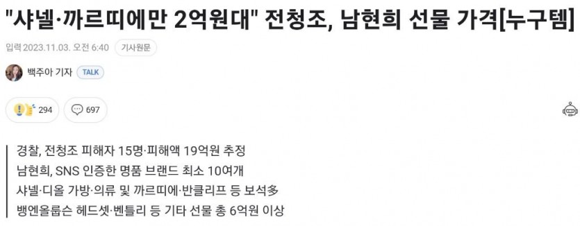 전청조가 남현희 한테 선물한 금액대 명품들..