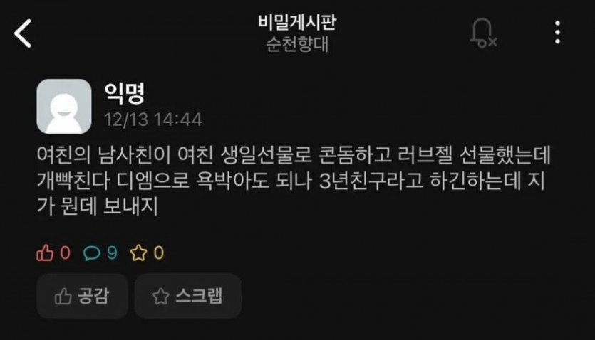 내 여자친구한테 콘돔 러브젤 선물한 남사친 ,,,