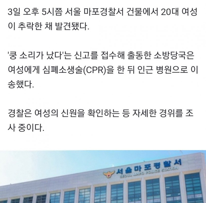 서울 마포경찰에서 여성 추락해 병원 이송..신원 확인 중..