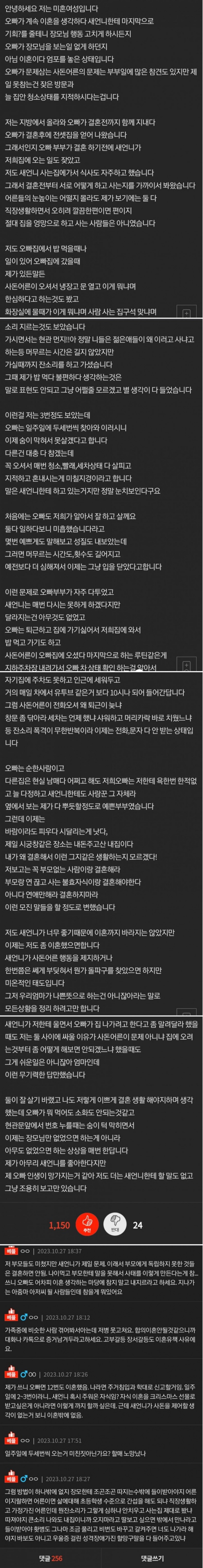 저희오빠 이혼사유 공감하시나요?