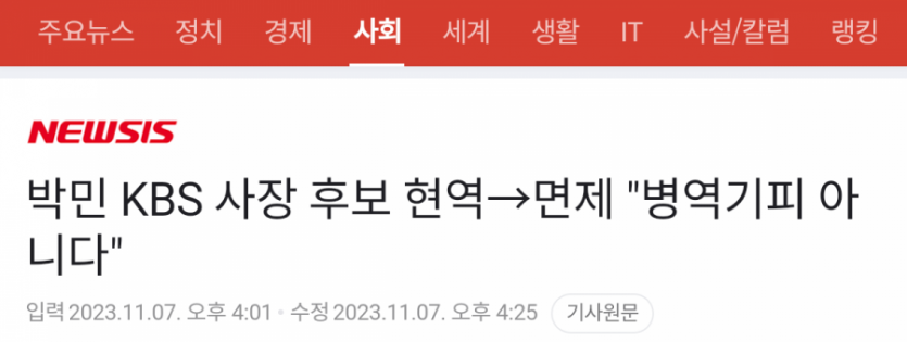박민 한국방송(KBS) 사장 후보자가 ‘부동시’(좌우 눈의 굴절이 다른 상태) 증상 악화로 재검을 통해 ‘1급 현역→4급 보충역’으로 판정이 바뀌었는데, 판정 4개월 전 운전면허를 취득한 것으로 확인됐다네요
