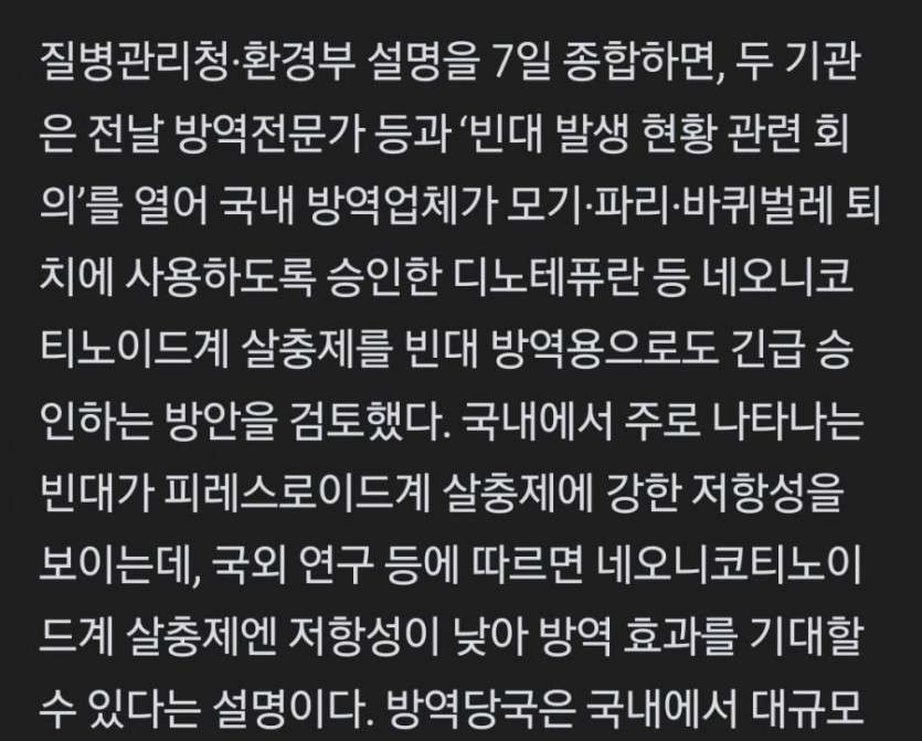 지금빈대는 여기에 면역이있어서 효과가 없어요