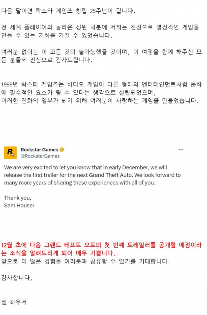 락스타 게임즈, GTA 차기작 트레일러 다음달 초에 공개 확정