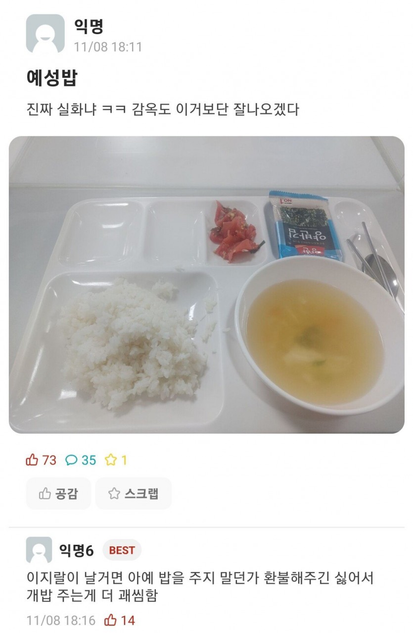 모 대학교 학식...감옥도 이거보단 잘나옴..