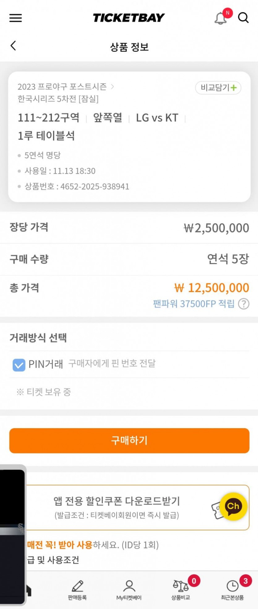LG우승 확정 지을수도 있는 한국 시리즈 5차전 암표 가격