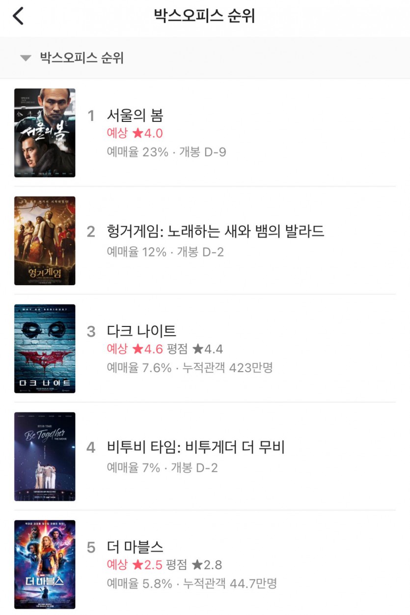 더 마블스 박스오피스순위..ㅎㄷㄷㄷ망했네