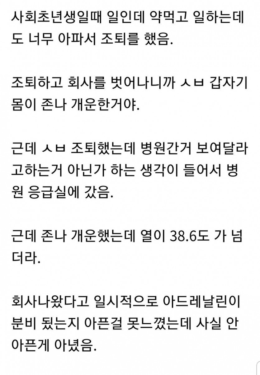 예전에 너무 아파서 회사 조퇴를 했었음...jpg