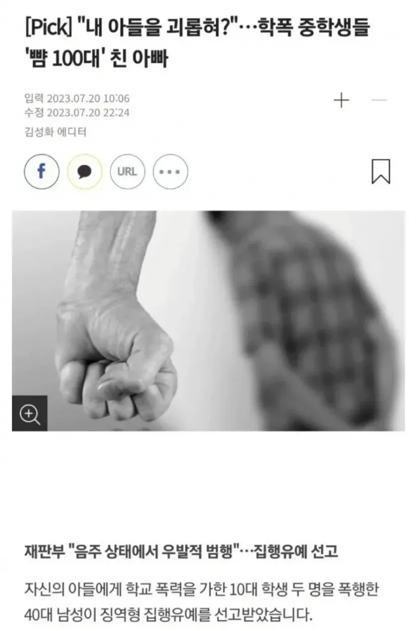 아들 때린 학폭 중학생 뺨 100대 때린 아빠