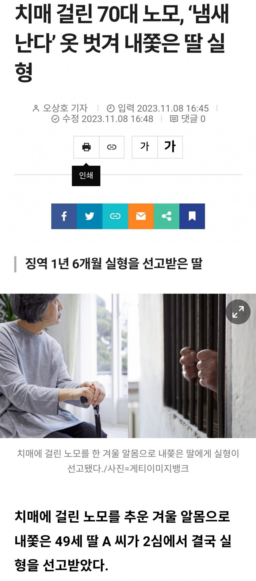 치매 걸린 70대 노모, 냄새난다 옷 벗겨 내쫓은 딸