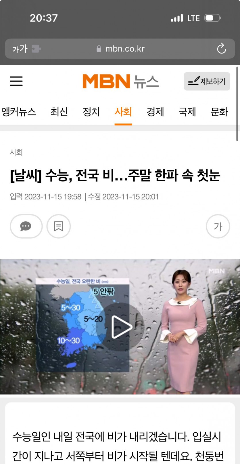 주말에 한파속 전국 첫눈 수능, 전국적으로 비