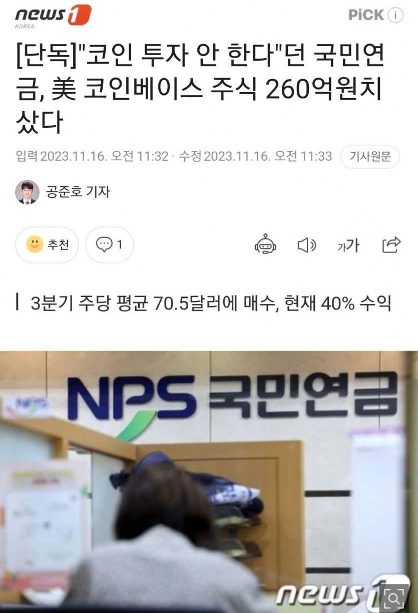 코인 투자 안 한다"던 국민연금, 美 코인베이스 주식 260억원치 샀다