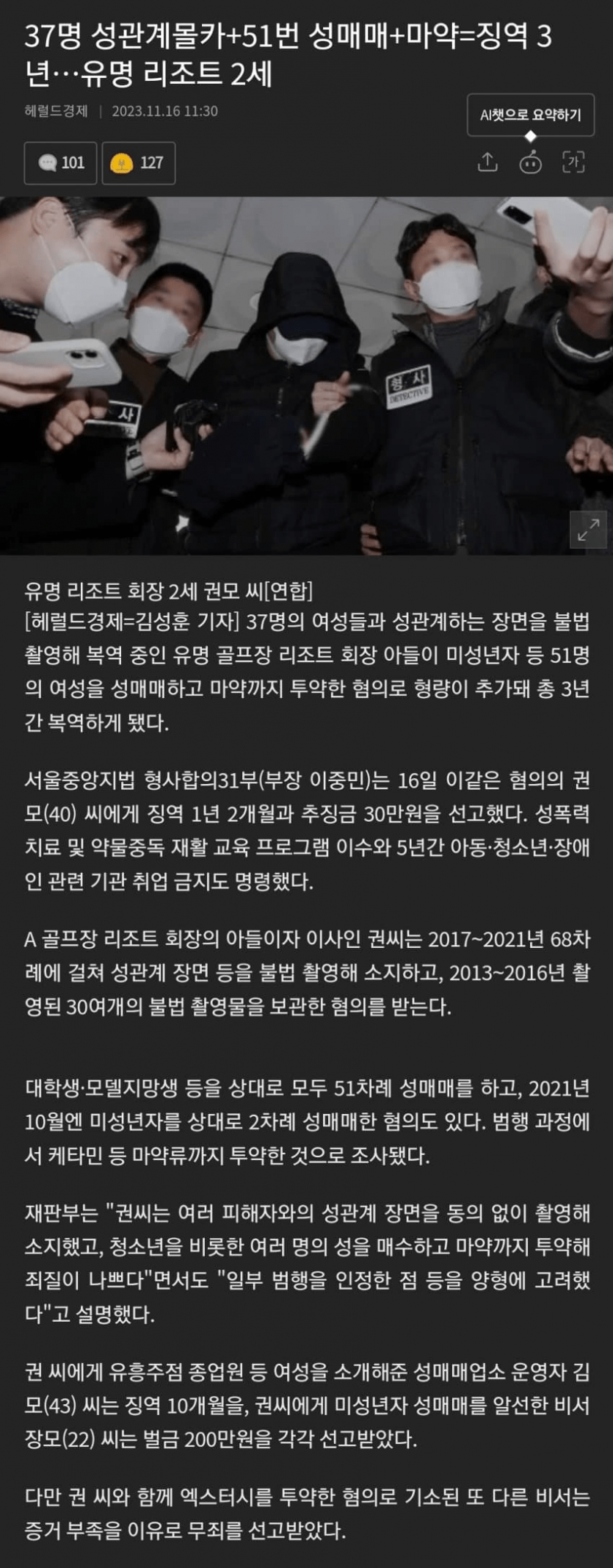 37명 성관계몰카+51번 성매매+마약=징역 3년…유명 리조트 2세