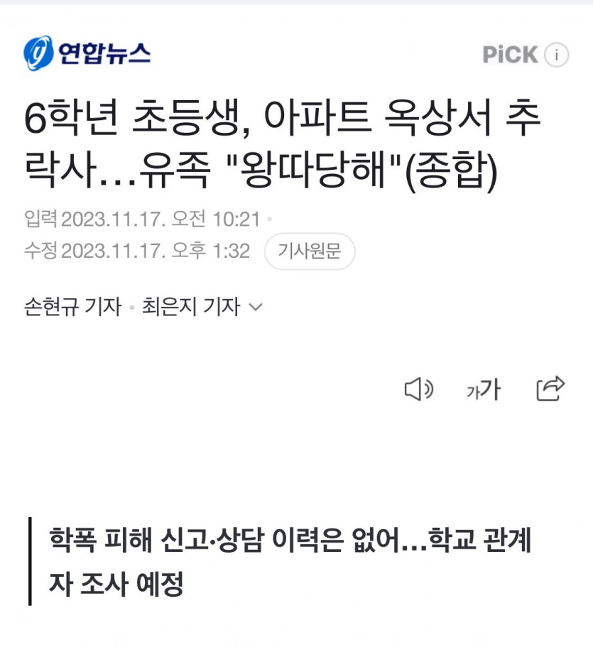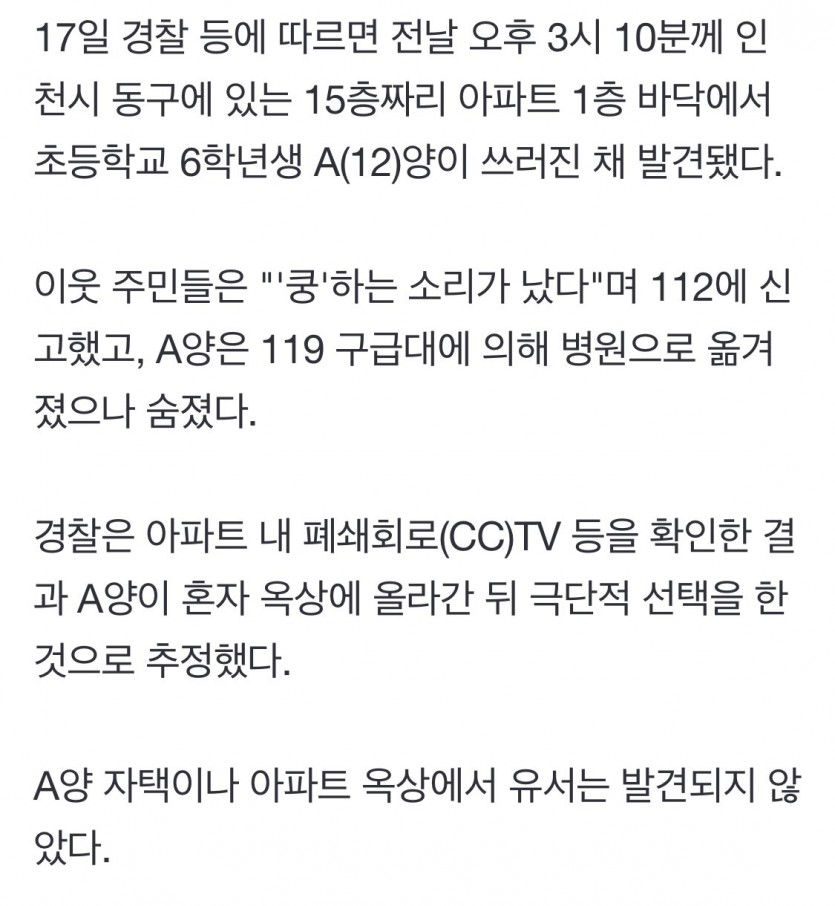 초등학교 6학년, 아파트 옥상서 추락사, 유족 “왕따당해”