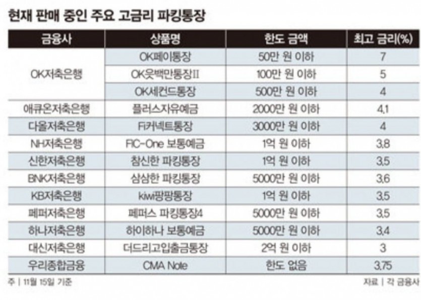 현재 판매 중인 고금리 파킹통장