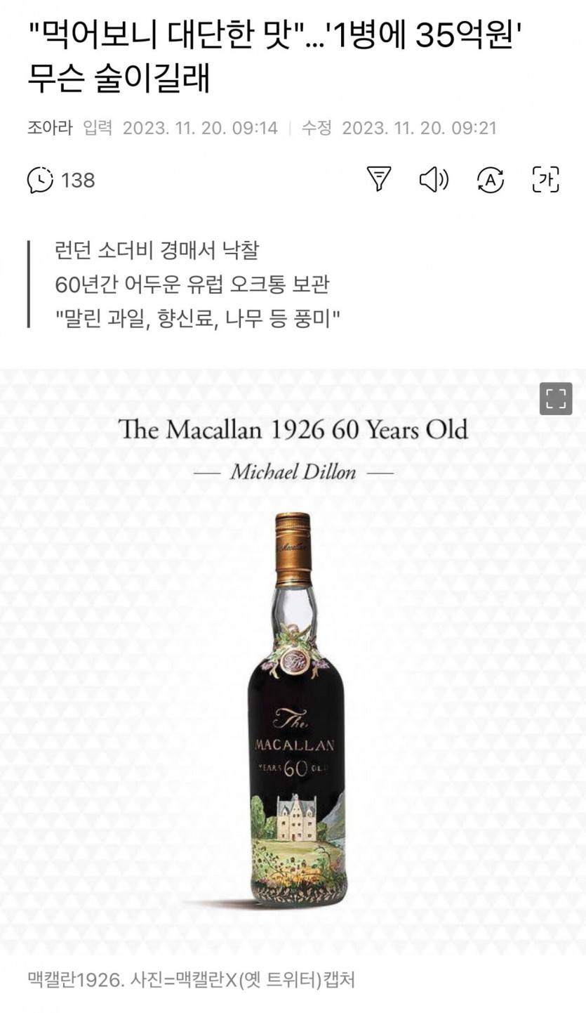 위스키 1병에 35억??????최고가 낙찰됬다.