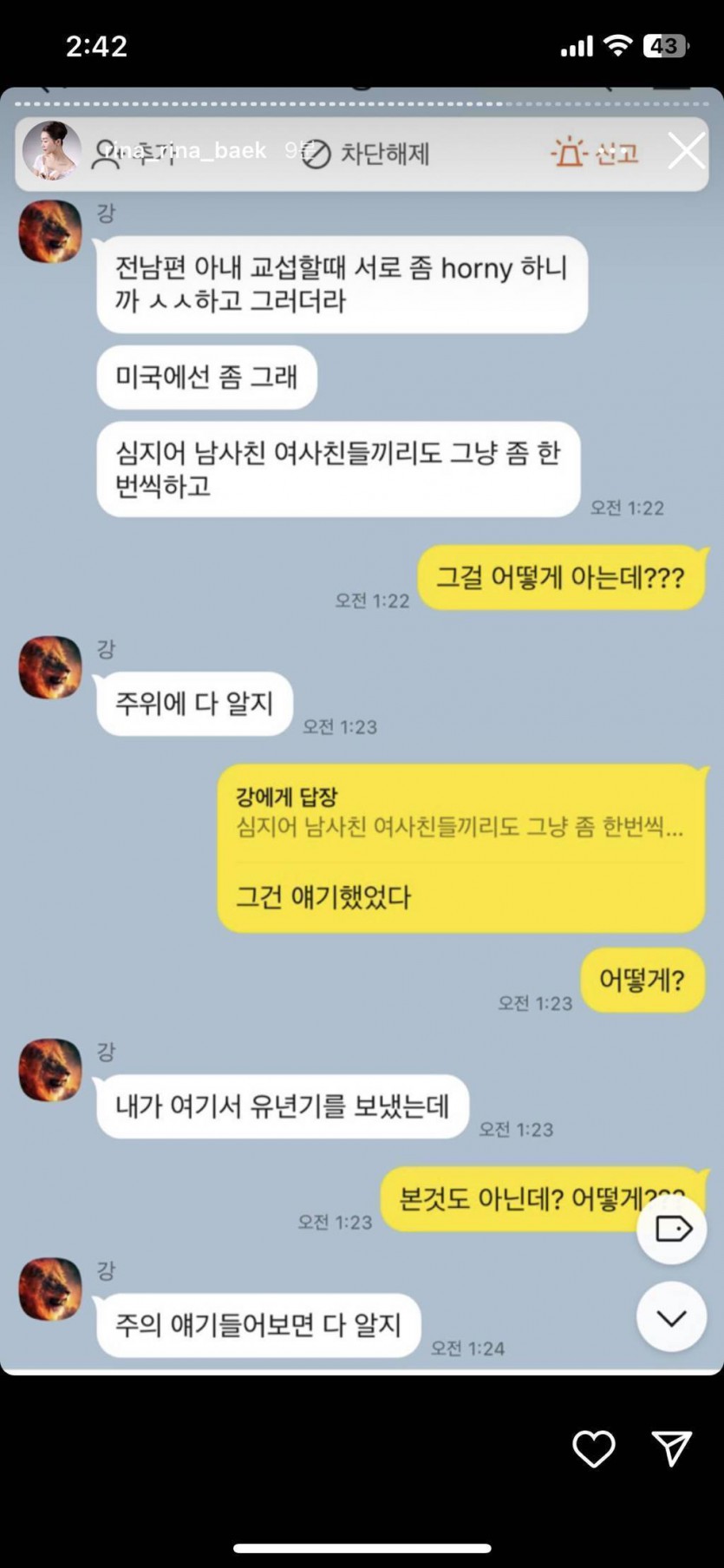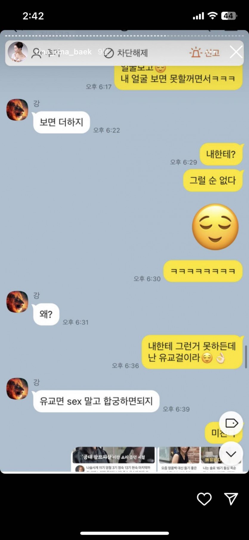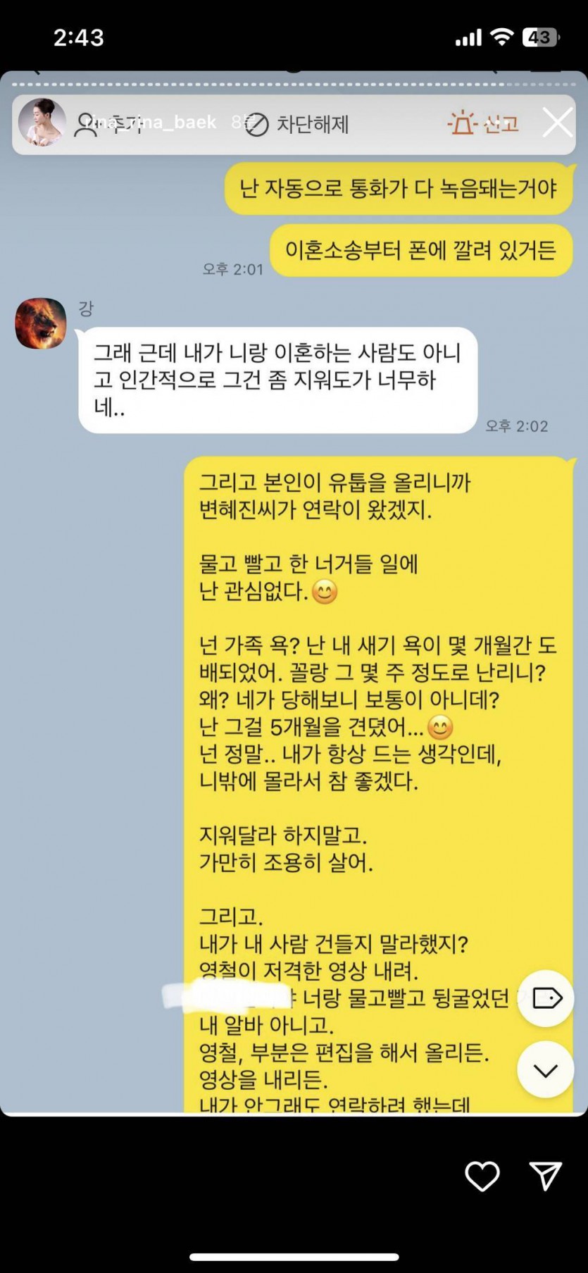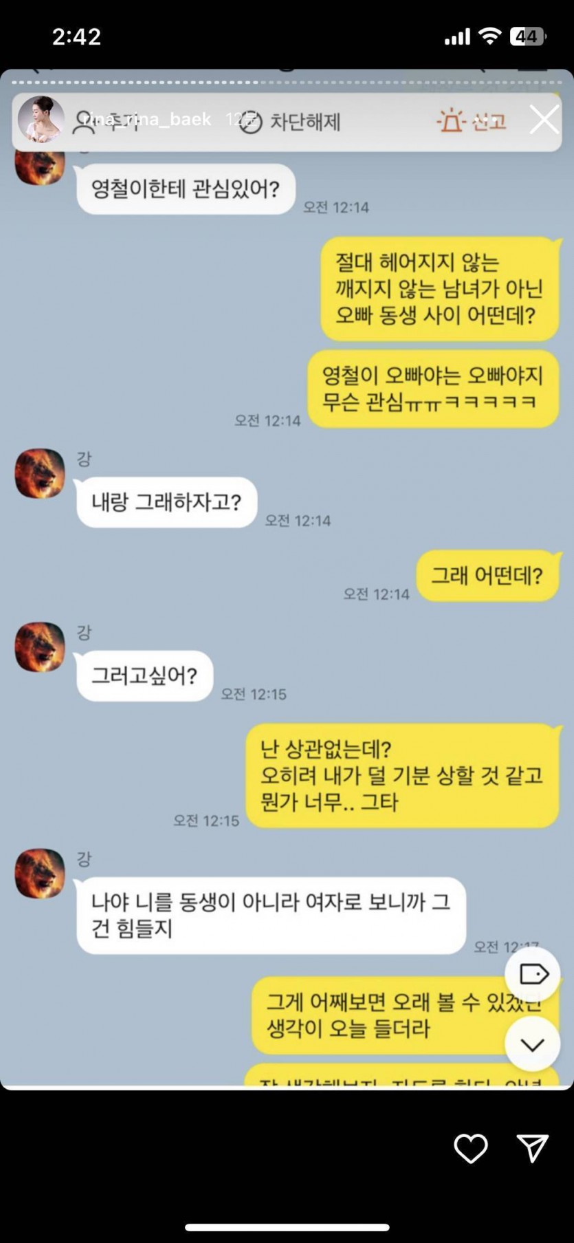 (스압주의, 더러움주의) 나는솔로 16기 영숙-상철 폭로 인스타 실시간